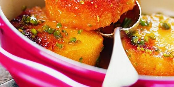 TOURNEDOS D'ANANAS AUX PISTACHES ET AU MIEL